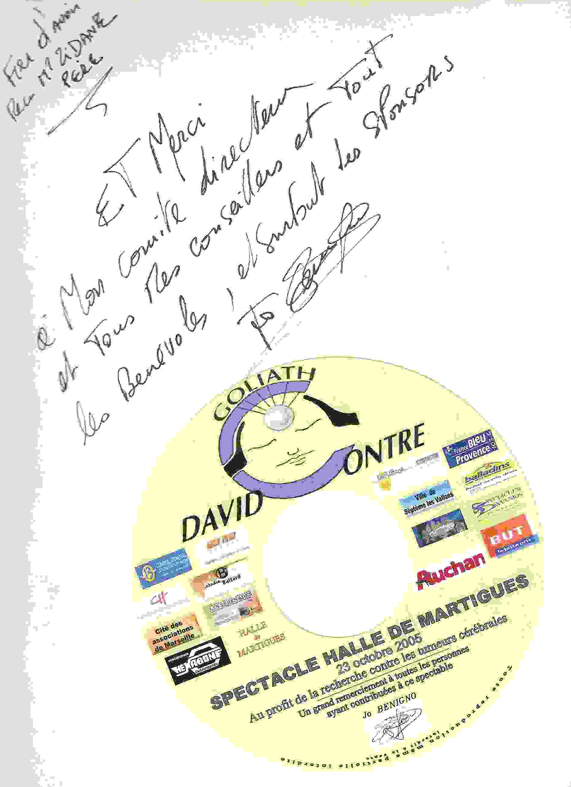 Le 17 juillet 2002, David BENIGNO entre d’urgence à CLAIRVAL, terrassé par une grosse crise d’épilepsie survenue tout à coup sans crier gare. Il a été opéré d’urgence le lendemain par le Professeur GOMEZ qui lui sauvé la vie en lui ôtant une tumeur cérébrale grosse comme un œuf mais ce n’est pas terminé :